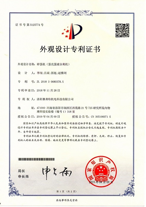 洛陽賽弗特機(jī)電科技有限公司成立于2015年,本公司自主研發(fā)生產(chǎn)敲蛋機(jī)(單排敲蛋機(jī)、雙排敲蛋機(jī)、三排敲蛋機(jī)、四排敲蛋機(jī)等);全自動(dòng)水中上蛋、洗蛋、烘干、噴碼、噴油、裝托等蛋品處理生產(chǎn)線的各環(huán)節(jié)設(shè)備;蛋清蛋黃分離器、蛋殼破碎機(jī)等蛋品處理生產(chǎn)線配套設(shè)備。產(chǎn)品門類齊全、設(shè)備組合配套能力強(qiáng),深受客戶好評和肯定。 目前共研發(fā)可批產(chǎn)設(shè)備30多種,同時(shí),應(yīng)對用戶的不同需求,還為特殊要求的用戶開發(fā)和生產(chǎn)非標(biāo)類、特殊...